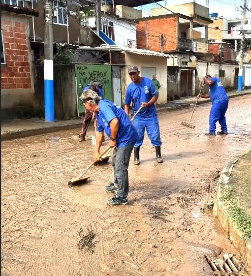 Prefeito Canella comanda mutirão de limpeza em Belford Roxo após fortes chuvas de sábado