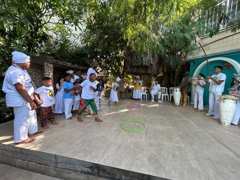 Um dos pontos altos da programação foi o projeto “Nosso Futuro é Ancestral”, voltado para as crianças, sob coordenação de Egbón Danda de Oxum. A iniciativa contou com brincadeiras, contação de histórias e dinâmicas educativas que buscaram transmitir valores como respeito, identidade e orgulho das origens africanas. As atividades infantis encantaram o público e mostraram a importância de ensinar, desde cedo, o valor da ancestralidade e do pertencimento cultural.