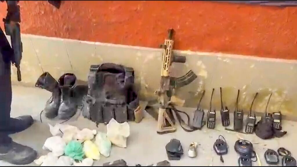 Durante a ação, os policiais apreenderam um fuzil, duas pistolas, seis carregadores de fuzil, uma granada, material entorpecente, sete rádios transmissores, além de um coturno e um colete balístico.