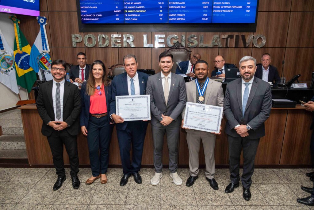 A homenagem, de autoria do presidente da Câmara, Dr. Marcio Guerreiro, foi marcada pela entrega da Medalha de Mérito Comendador Soares, uma das mais altas honrarias do Legislativo municipal. Segundo o parlamentar, o reconhecimento vai além da atuação jurídica do homenageado, simbolizando também a força de quem enfrentou momentos difíceis com dignidade, resiliência e fé na justiça.