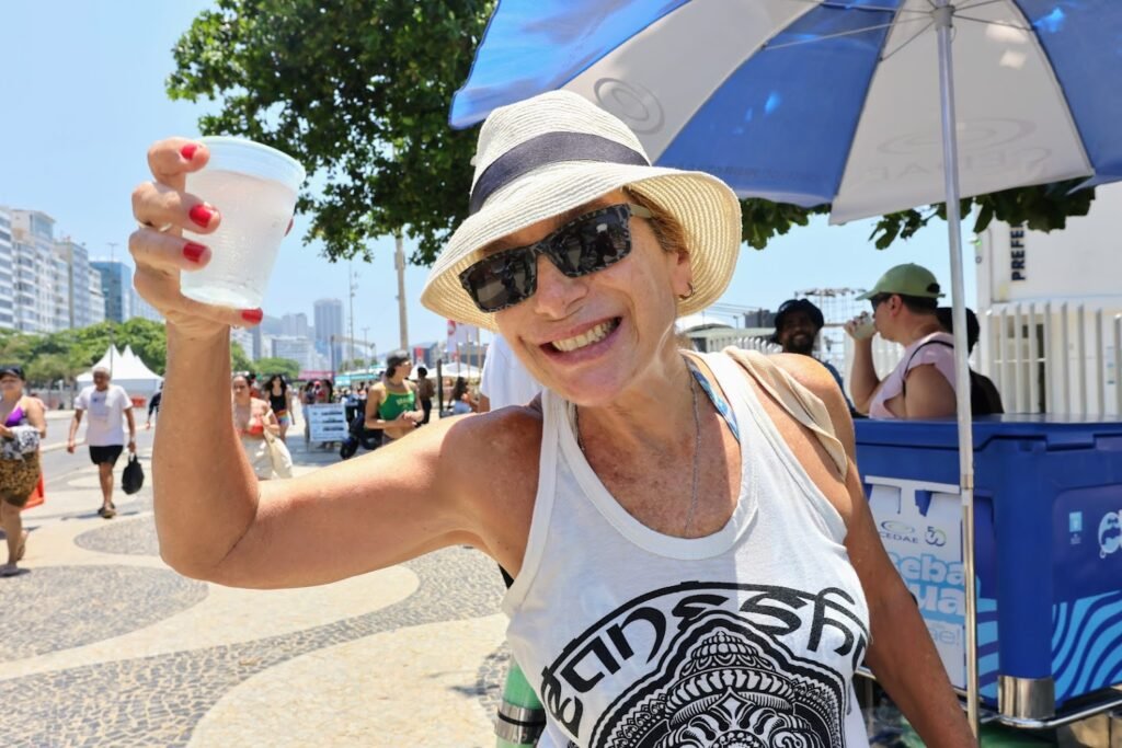 – Oferecer água é uma iniciativa maravilhosa para a população da cidade e para os turistas. Isso ajuda a evitar até o aumento de atendimentos nos postos de saúde – conta Georgette Moritz, médica que aproveitou a caminhada na orla de Copacabana para se hidratar.