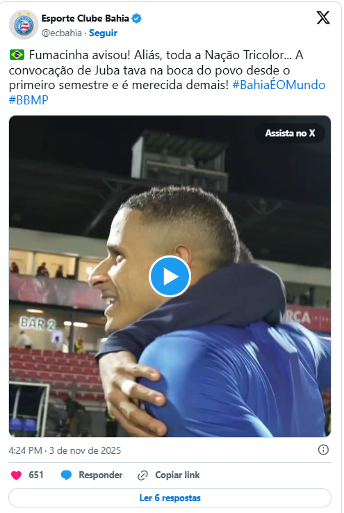 A novidade na lista de 26 jogadores é a presença do lateral-esquerdo Luciano Juba (Bahia). Quem também está de volta à seleção é o atacante Vitor Roque (Palmeiras) e o meio-campista Fabinho (Al-Ittihad/Arábia Saudita) – ambos ganharam a primeira oportunidade com Ancelotti. Vitor Roque não era chamado desde 2023, e Fabinho desde a Copa do Mundo de 2022.![]()