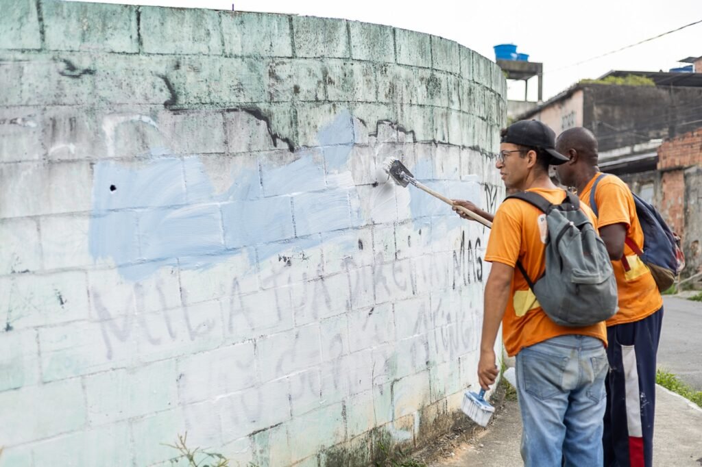 Choque de ordem da Prefeitura de Belford Roxo limpa ruas e apaga pichações no bairros Santa Teresa e Machado