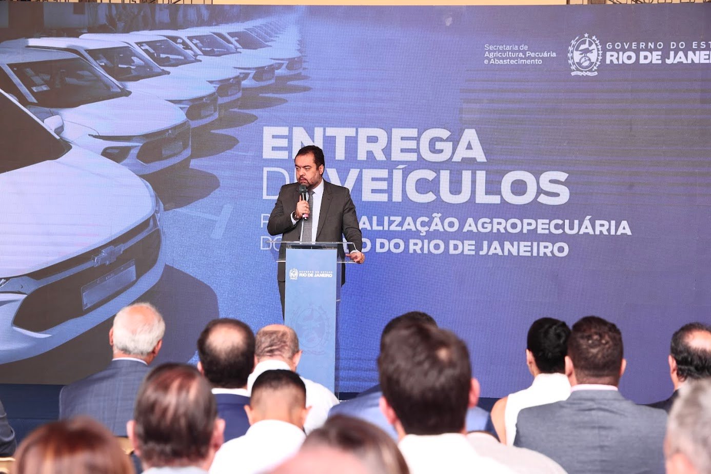 Durante a cerimônia de entrega de veículos, realizada no Palácio Guanabara, o secretário de Estado de Agricultura, Pecuária e Abastecimento, Dr. Flávio destacou que a medida fortalece o trabalho das equipes em diferentes regiões do Rio.