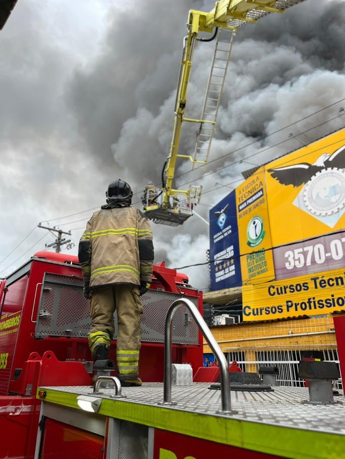Corpo de Bombeiros atua em incêndio de grande proporções em estabelecimento comercial em Ramos, na Zona Norte