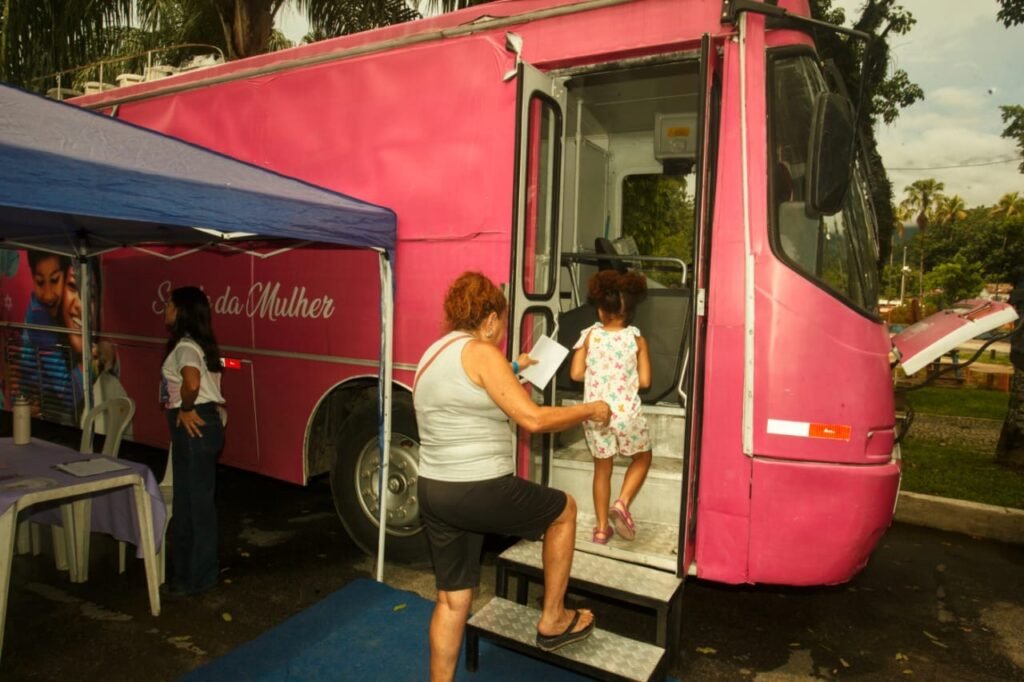 Os ônibus da Saúde e da Mulher também estiveram no local, oferecendo vacinação