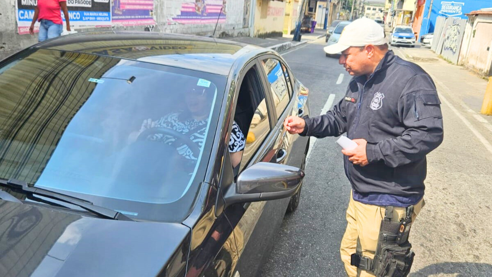 Agentes de trânsito estiveram nas ruas do Centro, entregando panfletos e orientando motoristas, passageiros e pedestres quanto à segurança nas vias públicas