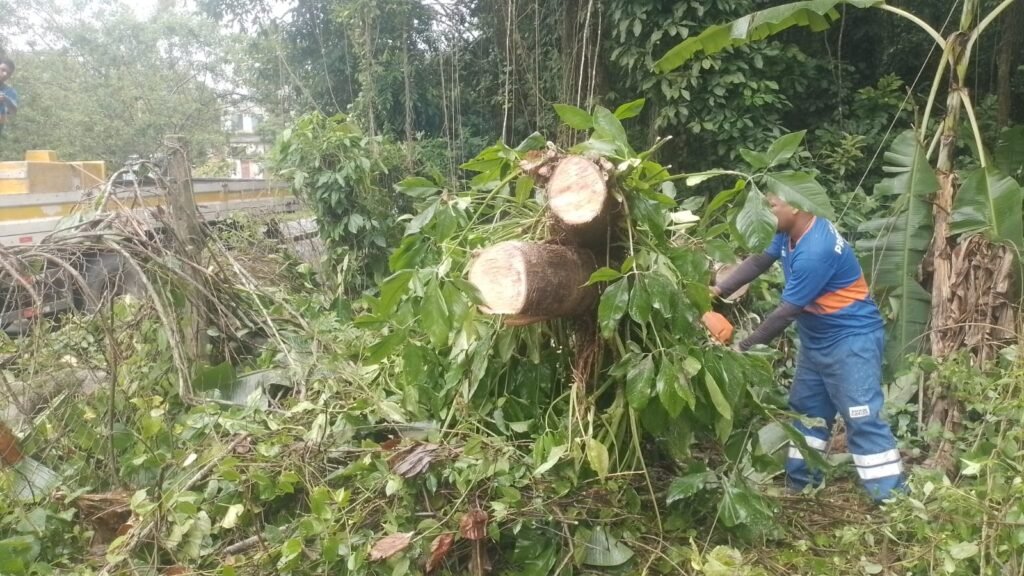As equipes de limpeza estão mobilizadas e atuam nos bairros Maria Helena, Figueira, Vila Urussaí, Jardim Primavera, Xerém, Santo Antônio, Pantanal, Parque Muísa, São Bento, Mangueirinha, Centro, Itatiaia, Praça Humaitá e Canaã.