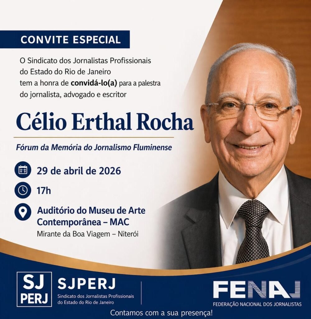 Personalidade destacada no Jornalismo, na área Jurídica e na Cultura, Célio Erthal Rocha é o convidado do Fórum da Memória do Jornalismo Fluminense, para falar sobre sua história profissional, nesta quarta-feira, dia 29 de abril, às 17h, no Museu de Arte Contemporânea –MAC. Ele é convidado do Sindicato dos Jornalistas Profissionais do Estado do Rio de Janeiro, que realiza o Fórum com apoio do MAC e da Secretaria Municipal das Culturas. A entrada é franca.