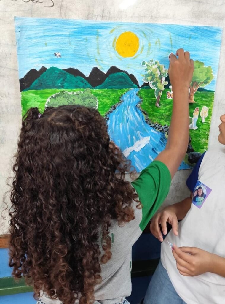 A ação contou com uma palestra interativa, na qual os estudantes descobriram curiosidades sobre os rios da região e compreenderam como pequenas atitudes no dia a dia podem influenciar diretamente na saúde do meio ambiente. Entre as dinâmicas, a atividade “O Rio Fala” convidou as crianças a expressarem, em cartolinas, sentimentos, desenhos e mensagens dedicadas aos rios , uma forma lúdica de estimular empatia e responsabilidade ambiental.