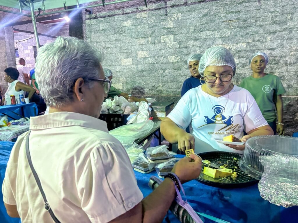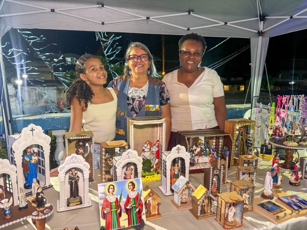 Outra atração foi a barraca da Economia Solidária, repleta de utensílios e artigos religiosos. Gilza Rosa, que participa da comemoração pelo quarto ano consecutivo, contou que a iniciativa fortalece o trabalho de artesãos da cidade e incentiva a espiritualidade por meio da arte. “Participar dessa festa é muito especial. A gente não vende só artesanato; a gente compartilha devoção, carinho e o que aprendemos dentro da comunidade. É gratificante ver as pessoas levando algo que fizemos com fé”, declarou.