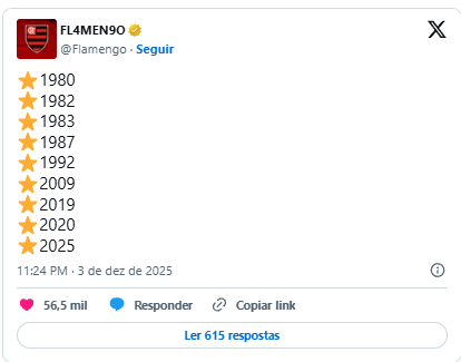 Este é o nono título do Rubro-Negro na história da competição, com as conquistas nos anos de 1980, 1982, 1983, 1987, 1992, 2009, 2019, 2020 e 2025.