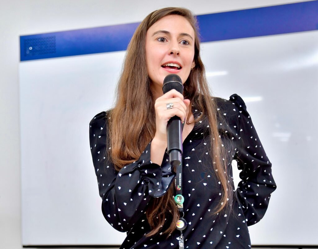 A palestrante Nicole Stallivieri, doutora em Linguística, mestre em Letras e especialista em Língua Portuguesa, ressaltou a importância da troca entre educadores e o papel insubstituível do professor, mesmo diante das inovações tecnológicas.