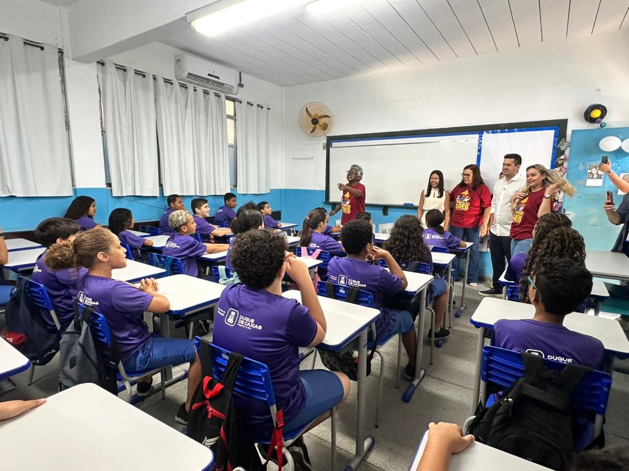 “É uma alegria estar em Belford Roxo e sentir o acolhimento dos professores da EJA. A inteligência artificial está em tudo, mas a essência da educação nunca será substituída por nenhuma tecnologia. O que o professor faz vai além do conteúdo — ele toca o coração e a perspectiva de vida do aluno. Os estudantes da EJA trazem histórias marcadas por exclusões, e é nosso papel acolhê-los com empatia e propósito”, destacou Nicole, citando o educador Paulo Freire, patrono da EJA no Brasil.