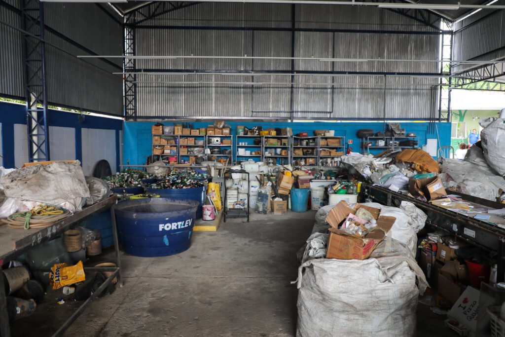 O galpão passou por uma ampla reestruturação. Antes em condições inferiores, o equipamento recebeu novas telhas, melhorias estruturais e uma área de acesso adequada para que os moradores possam descartar seus resíduos recicláveis. Além da área destinada à triagem e reciclagem, o local conta agora com banheiros, sala administrativa, sala de reunião e cozinha, garantindo melhores condições de trabalho para os catadores.