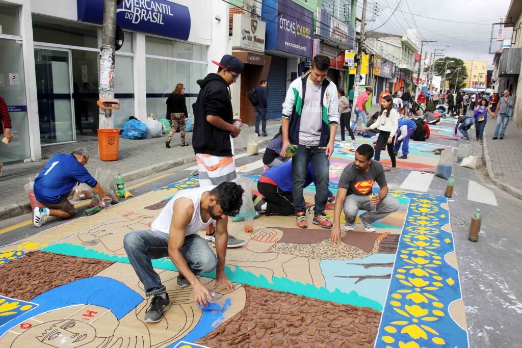 Enquanto uma parte da população aproveita os dias de folga para descansar, outra mantém viva a essência religiosa da data. Em diversos bairros do Rio e municípios da Baixada Fluminense, fiéis devem se reunir desde as primeiras horas do dia para confeccionar os tradicionais tapetes de sal, uma manifestação cultural e espiritual que transforma ruas em verdadeiros corredores de arte e devoção. Utilizando sal colorido, serragem, flores e outros materiais, os desenhos representam símbolos religiosos e passagens bíblicas, preparando o caminho para as procissões.