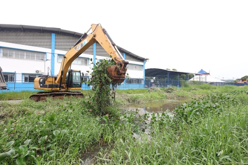 No total, quatro escavadeiras e oito caminhões operam no Canal São Bento, Canal Faria, Canal Marilândia e Valão da 7 para garantir a liberação de vias.