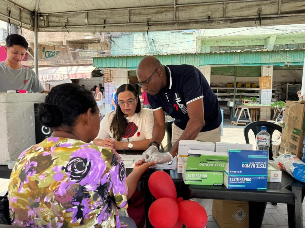 Durante a ação, moradores aproveitaram os serviços oferecidos. O aposentado Sr. Joel de Souza, 62 anos, flamenguista, passou pela praça ainda comemorando o título do seu time e parou para ver a ação e elogiou a iniciativa. “O vermelho chamou minha atenção porque estou no ritmo do título do Flamengo, mas essa também é uma mensagem importante. É mais saúde e informação para toda a população. A gente precisa dessas ações perto de casa”, disse durante a testagem.