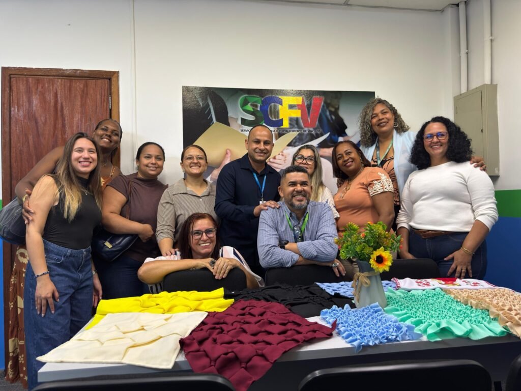 O espaço, totalmente climatizado e acolhedor, conta com uma brinquedoteca destinada às crianças, enquanto as mães participam das atividades, garantindo conforto e inclusão para todos os públicos. As oficinas acontecem quinzenalmente, às quartas-feiras, nos turnos de 10h e 14h, e atualmente reúnem 14 alunas em atividades como capitonê, com a confecção de capas de almofada, bolsas, carteiras, capas de notebook e caminhos de mesa.