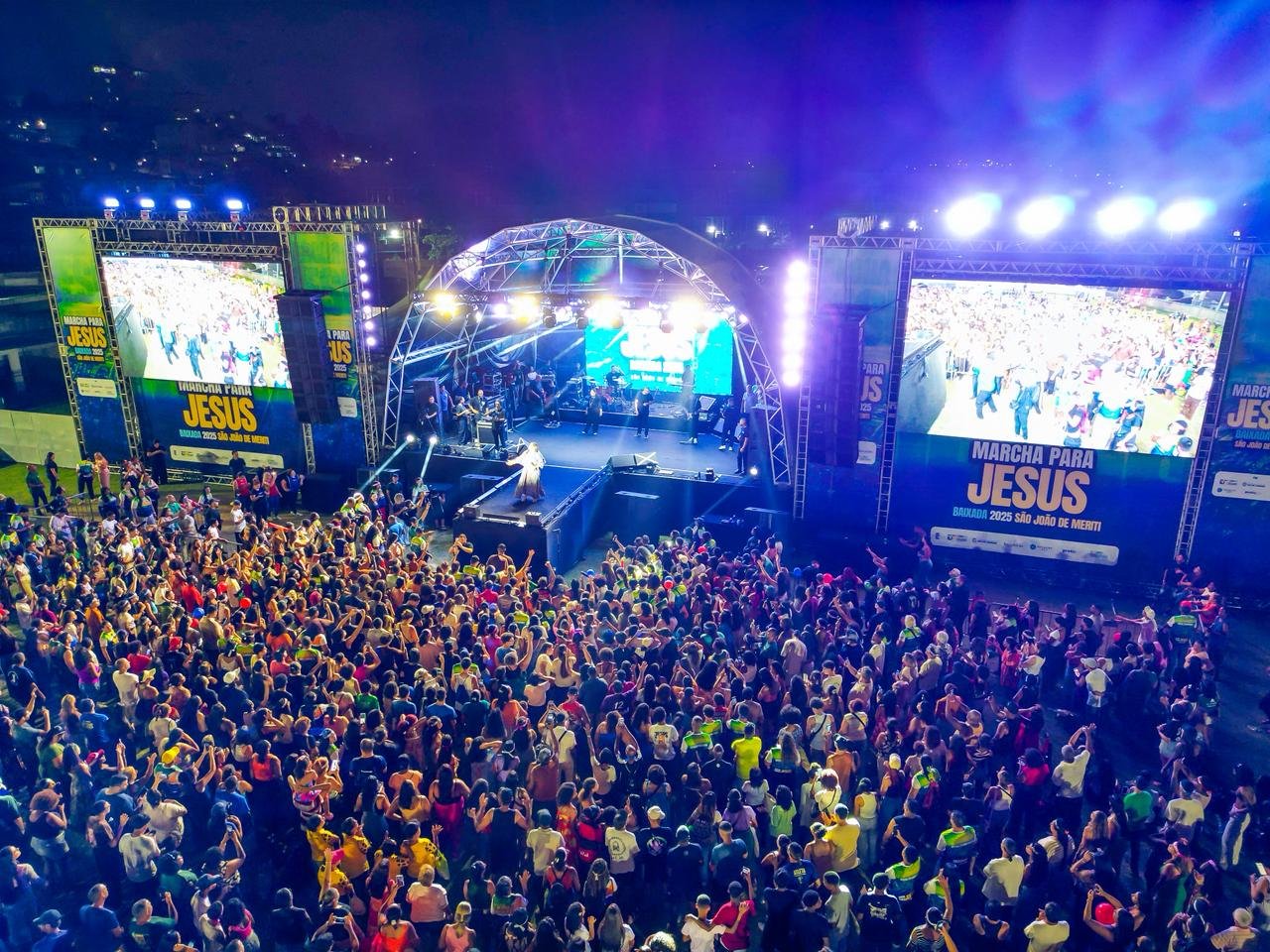 Organizadores do encontro, bispo Maurílio Luiz e o pastor Marcus Gregório, intercederam pela cidade durante o evento. “É um privilégio ver a cidade reunida em uma só voz, declarando fé e esperança. A Marcha para Jesus já faz parte da história de Meriti, e ver esse movimento crescendo é motivo de gratidão”, pontuou o bispo Maurílio Luiz.