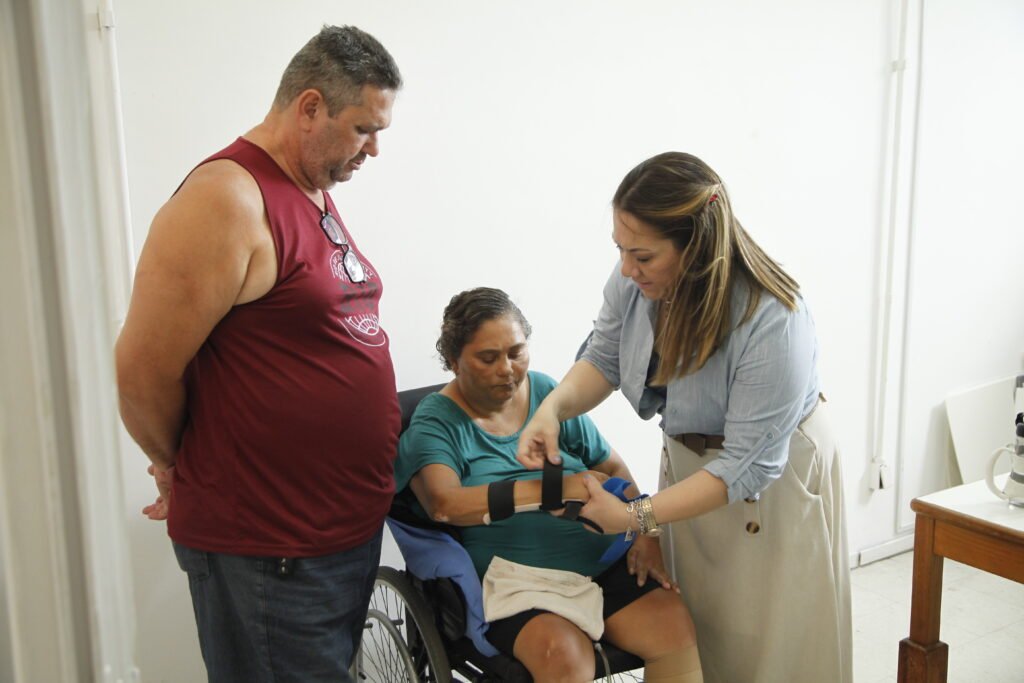 O impacto também foi sentido pelas famílias. Jaqueline Almeida, 53 anos, uma das pacientes atendidas, se emocionou ao receber sua órtese de braço direito.