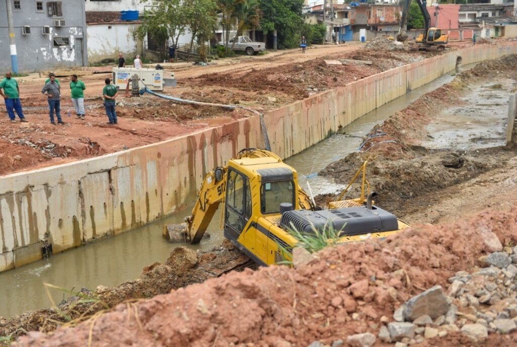 Prefeito Canella e secretário fiscalizam obras avançadas de canalização do Canal Maxambomba, em Belford Roxo