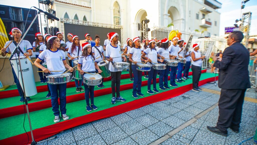 A programação cultural tomou conta da tarde e da noite. A abertura ficou por conta da Banda Fanfarra da Escola Municipal Professora Graça Grijó. Em seguida, alunos de nove escolas municipais realizaram apresentações musicais e encenaram o tradicional Auto de Natal. O público também se emocionou com o Madrigal do Villa, coral da Escola de Música Villa-Lobos. Encerrando a noite, a dupla infantil Bento e Totó animou as crianças com músicas, brincadeiras e interação com as famílias.