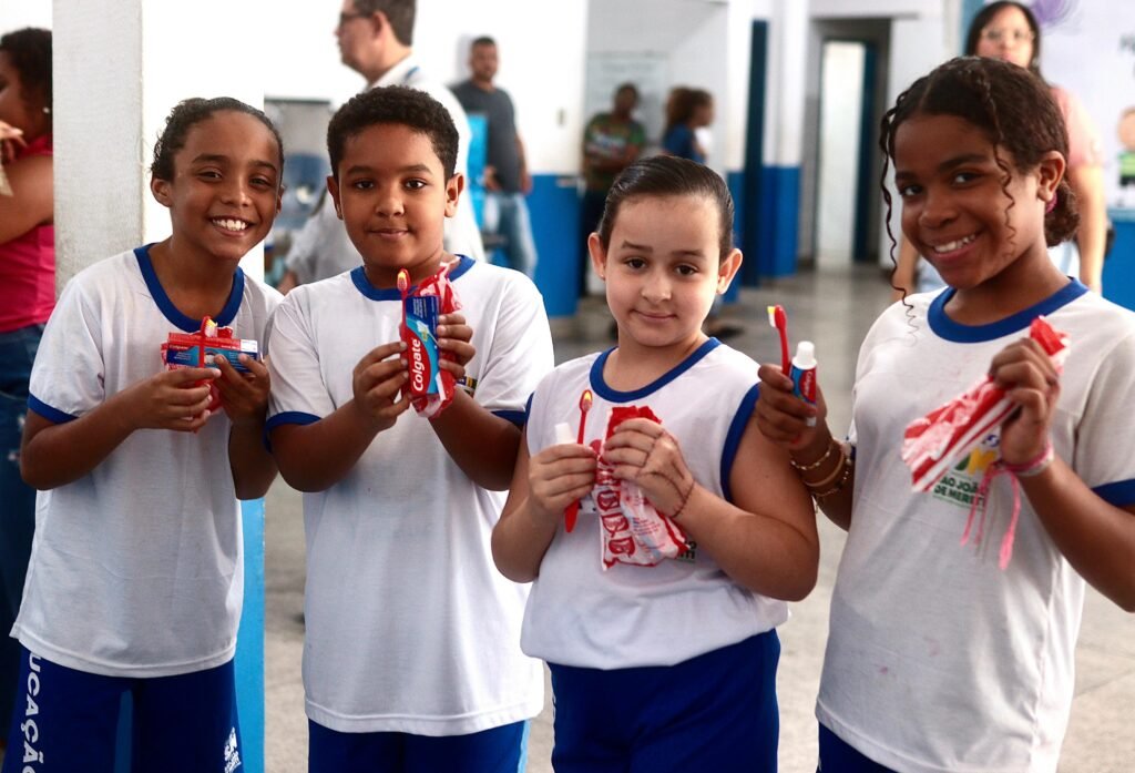 Alunos participaram de escovação, receberam kits de higiene bucal e passaram por aplicação de flúor