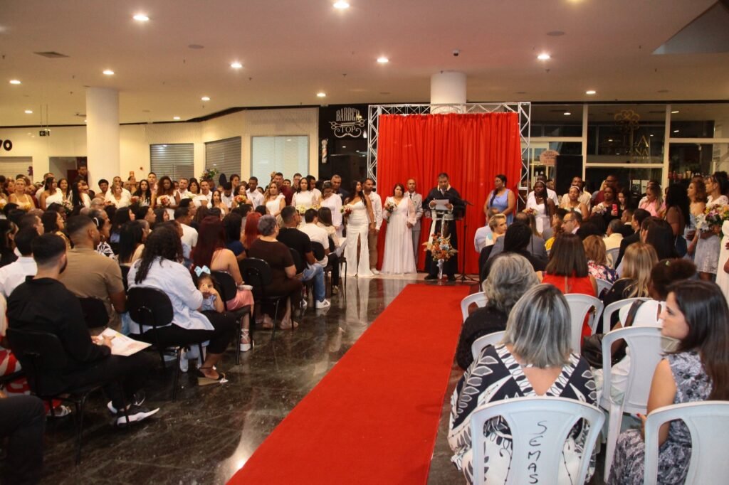 O governo municipal oficializou gratuitamente a união civil de 52 casais no Top Shopping .