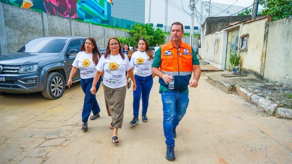 O prefeito Léo Vieira inspeciona as regiões afetas pelas chuvas em São João de Meriti