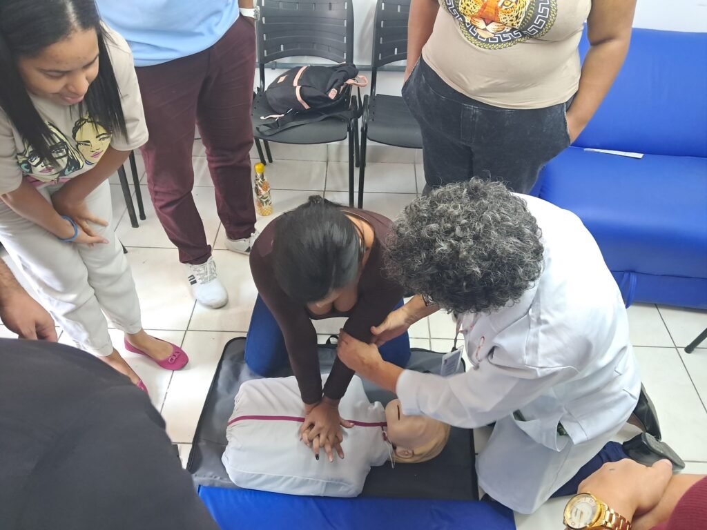 Durante o treinamento, funcionários de diversos setores da unidade receberam orientações teóricas e participaram de exercícios práticos sobre protocolos básicos de atendimento emergencial. Entre os conteúdos abordados estavam as técnicas de Reanimação Cardiorrespiratória (RCP) em adultos e crianças, com foco na preservação da vida da vítima e na segurança do socorrista.