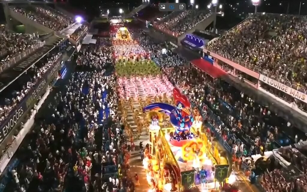 Um dos momentos mais emocionantes foi a presença da Velha Guarda em posição de honra numa das alegorias — símbolo de tradição dentro de um enredo que celebrava justamente o encontro de culturas.