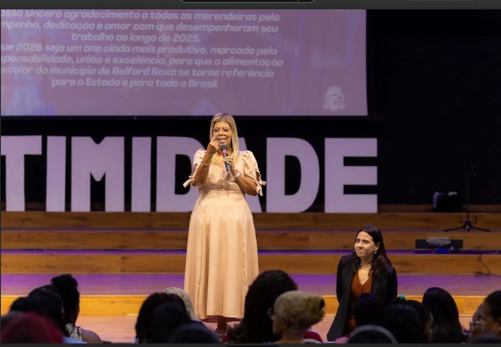 A Secretaria de Educação de Belford Roxo (Semed) promoveu, nesta terça-feira (20) uma Formação para Merendeiras da rede municipal de ensino, na Primeira Igreja Batista de Heliópolis. O encontro teve o comando da secretária de Educação, Sheila Boechat, com apresentação de palestras de nutricionistas, entrega de uniformes, momento de interatividade com musicoterapia e a parceria e participação da Secretaria Municipal de Assistência Social e Cidadania, através do Serviço de Convivência e Fortalecimento de Vínculos (SCFV). O evento, realizado em dois horários (manhã e tarde), reuniu quase 700 profissionais responsáveis por preparar e distribuir deliciosas e nutritivas refeições aos alunos das escolas e creches municipais.
