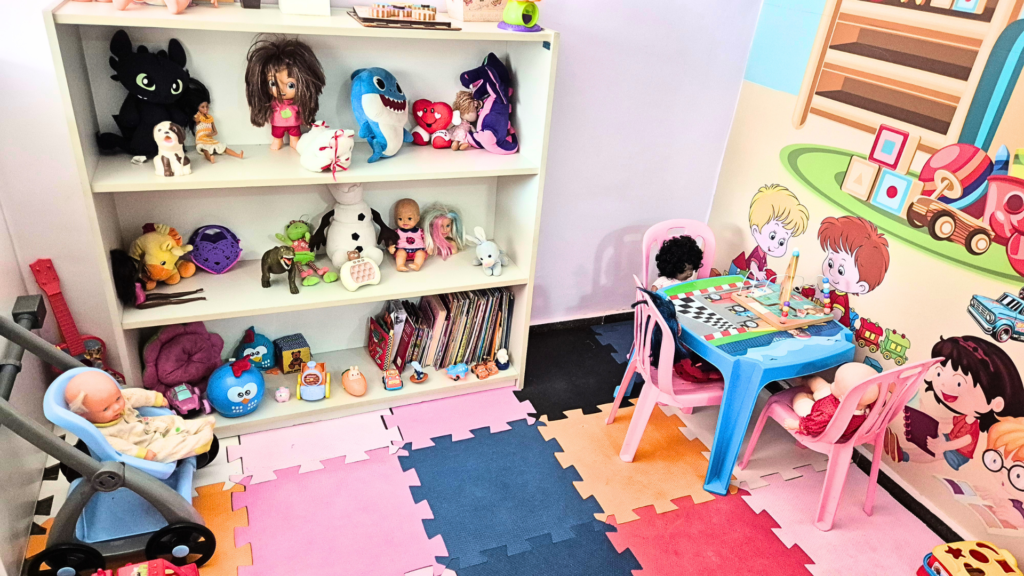 A secretaria disponibiliza brinquedoteca para filhos de mães atípicas, que recebem atendimento psicológico enquanto suas crianças são cuidadas