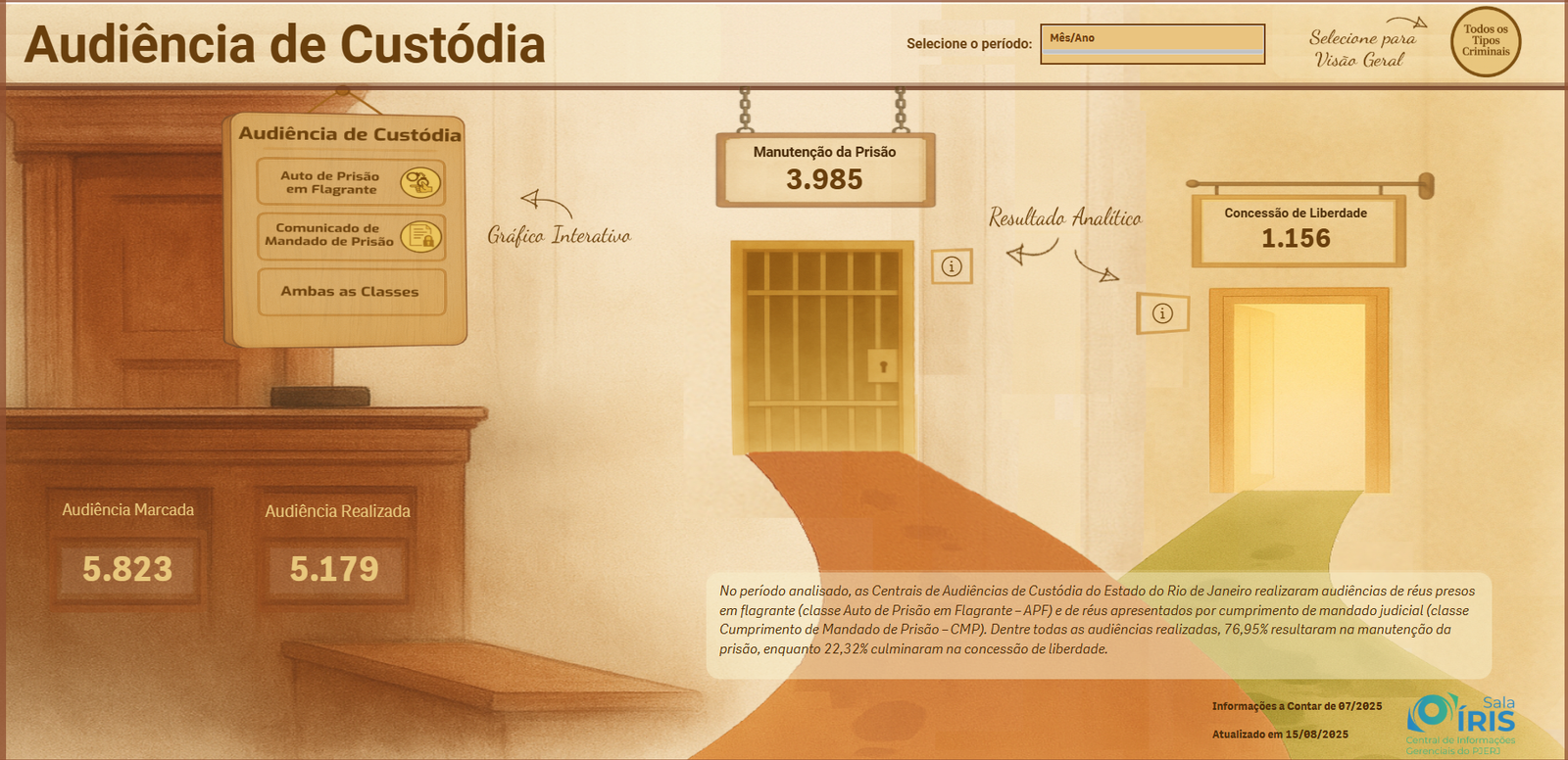 O Tribunal de Justiça do Estado do Rio de Janeiro, em seu contínuo compromisso com a eficiência e aprimoramento da gestão processual, disponibilizou, a partir de terça-feira, 12 agosto, o Painel de Monitoramento das Centrais de Audiências de Custódia, que foi desenvolvido para otimizar o acompanhamento e auxiliar na gestão destas unidades judiciárias. A inovadora ferramenta de divulgação de dados estatísticos oferece uma visão abrangente e objetiva das audiências realizadas, com indicação do percentual de decisões de concessão de liberdade e de manutenção de prisão.