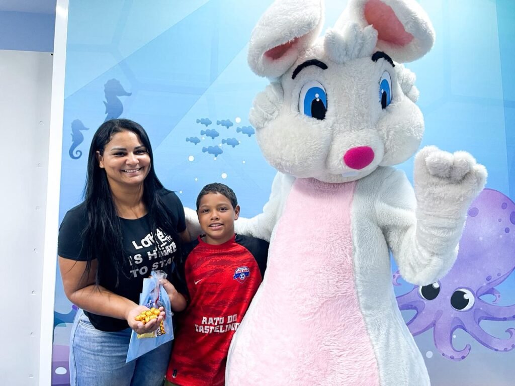 A programação contou com a presença do coelho da Páscoa, que levou alegria e descontração aos pequenos pacientes, além da realização de uma caça aos ovos, promovida de forma lúdica e interativa. A atividade estimulou a participação das crianças, favorecendo a socialização e contribuindo para um ambiente mais acolhedor.